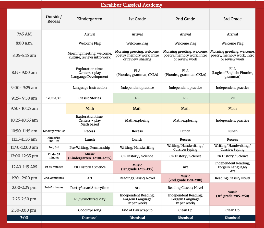 Schedule is subject to adjustment. Final schedules are shared with enrolled families before the school year.